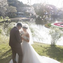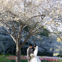 浜松城やフラワーパークでの撮影は、満開の桜とやわらかな光に包まれた、この季節ならではの特別なロケーション。水辺や花々に囲まれた風景の中で、おふたりの自然な表情を残すことができます。ドレスでの撮影はもちろん、桜の下でのロマンチックな雰囲気がとても素敵ですね!!